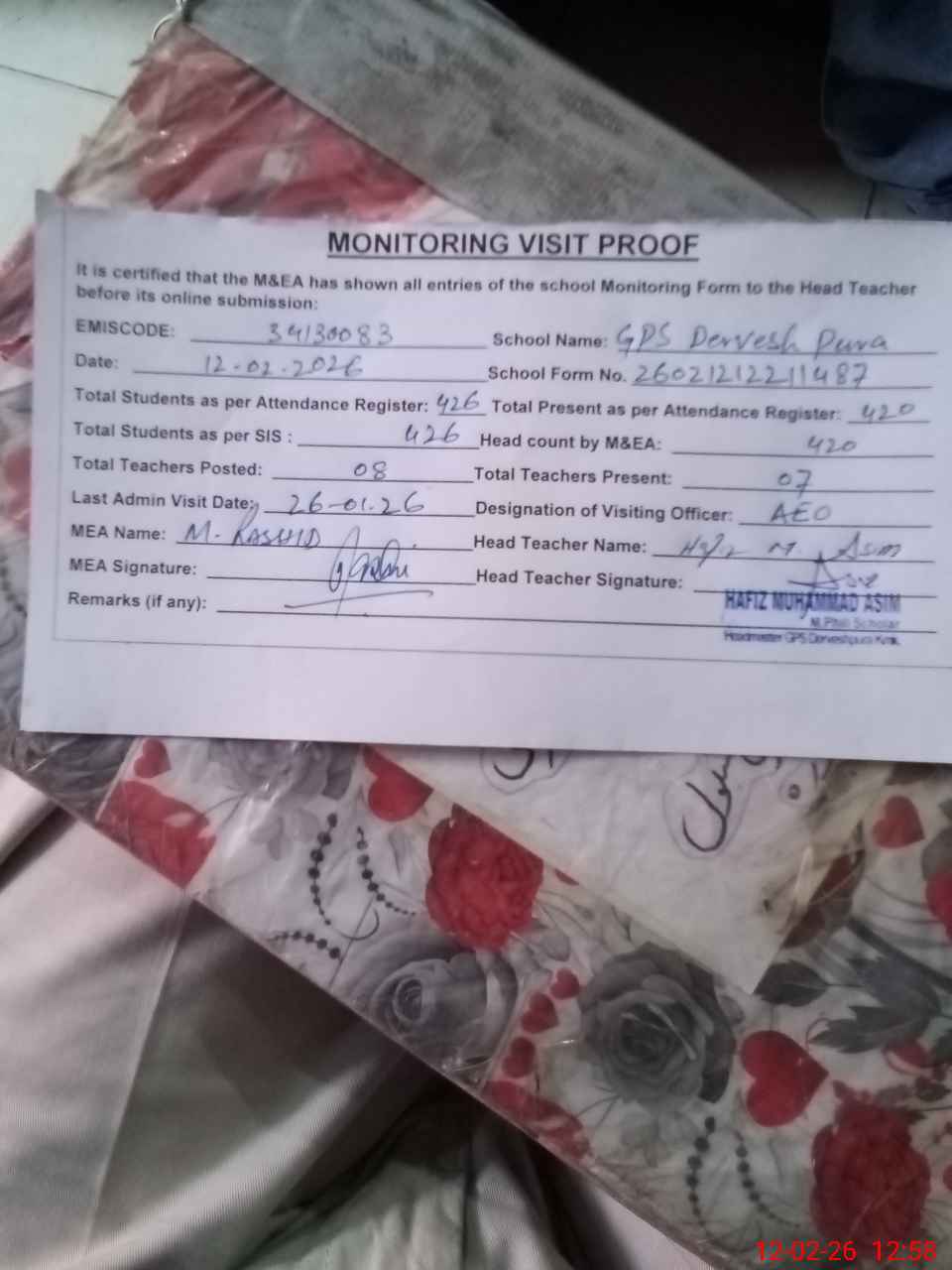 | EMIS Code: 34130083 | Name of School: GPS DERVESH PURA | |||