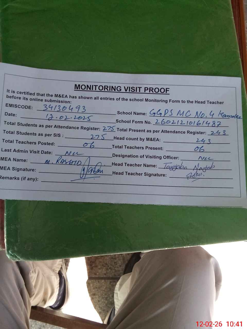 | EMIS Code: 34130493 | Name of School: GGPS MC NO.04 KAMOKE | |||