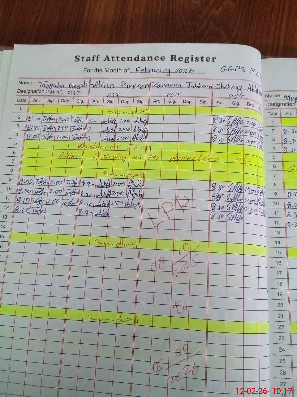 | CNIC | Full Name | Designation | R/C | Absence During Last Calender Month |