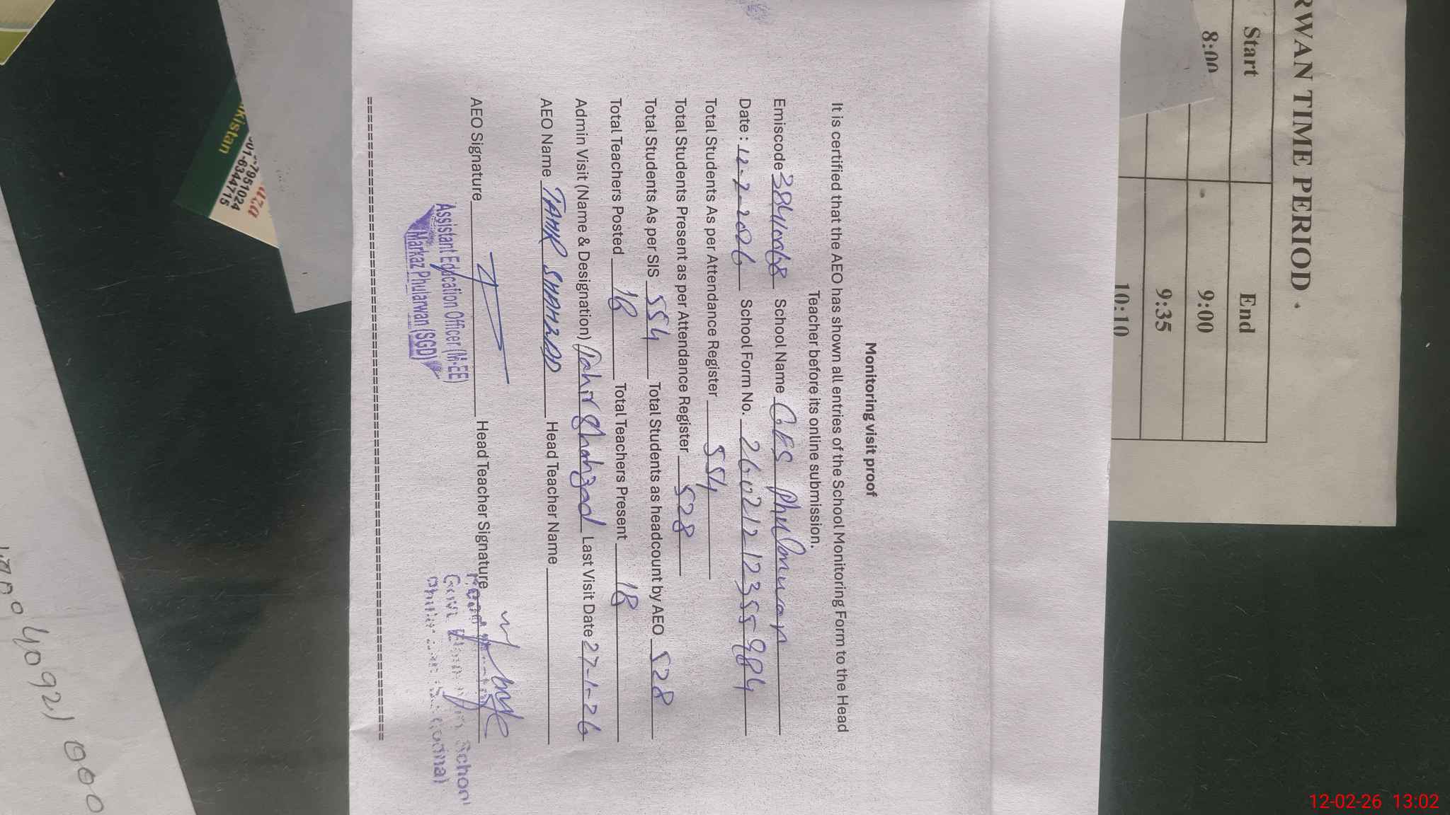 | Certified that this School was Inspected by the Undersigned MEA/DMO Today and the Information Stated Above is as Per Record. | |||||