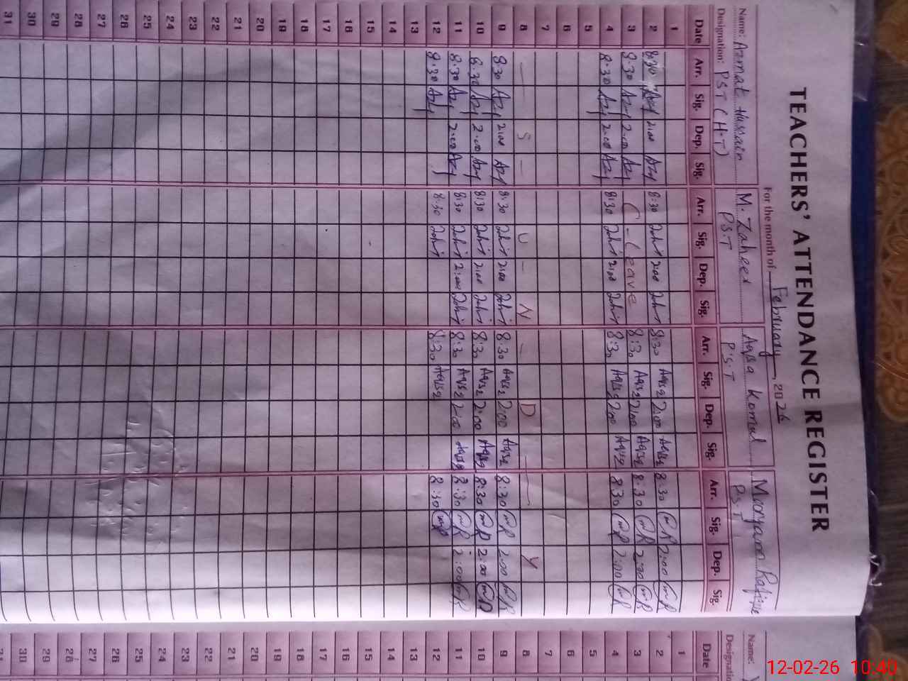 | Name: Az**** Hu**** Designation: (School Headmaster's/Headmistress's) PST Phone/Cell Number: 03**** |