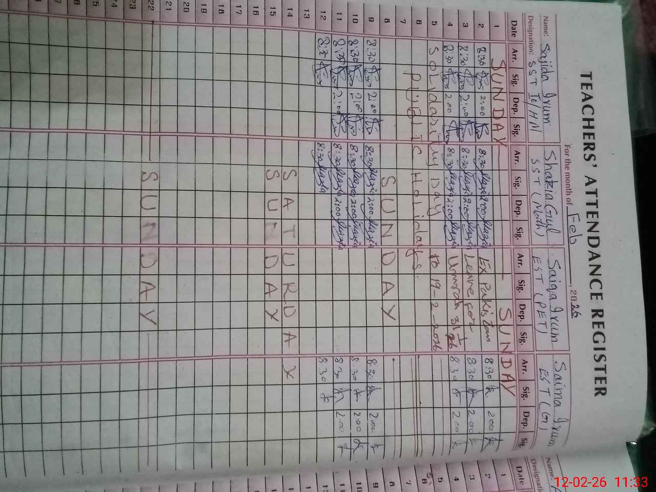 | Name: Sa**** Ir**** Designation: (School Headmaster's/Headmistress's) I/C Headmistress Phone/Cell Number: 03**** |