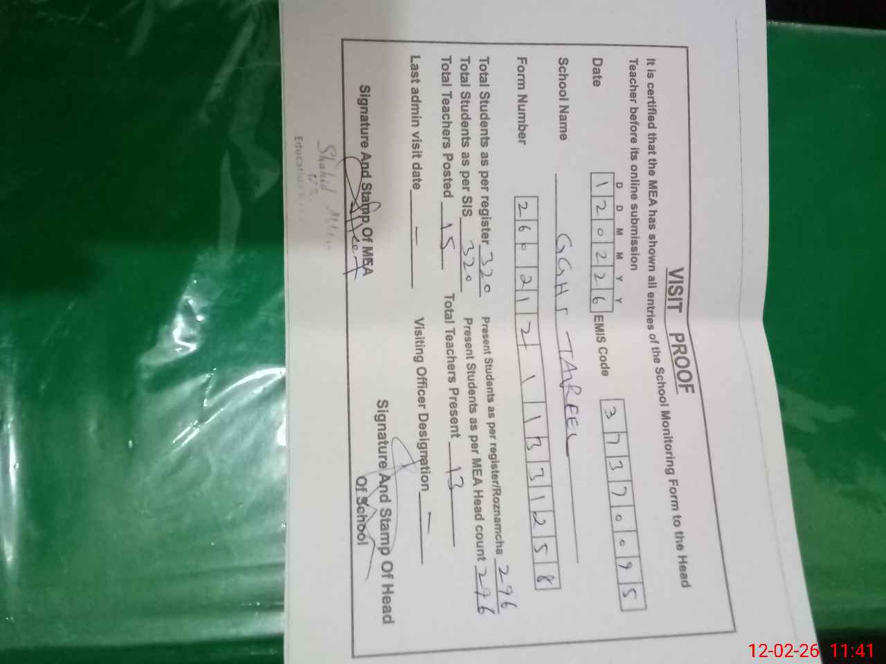 | Certified that this School was Inspected by the Undersigned MEA/DMO Today and the Information Stated Above is as Per Record. | |||||
