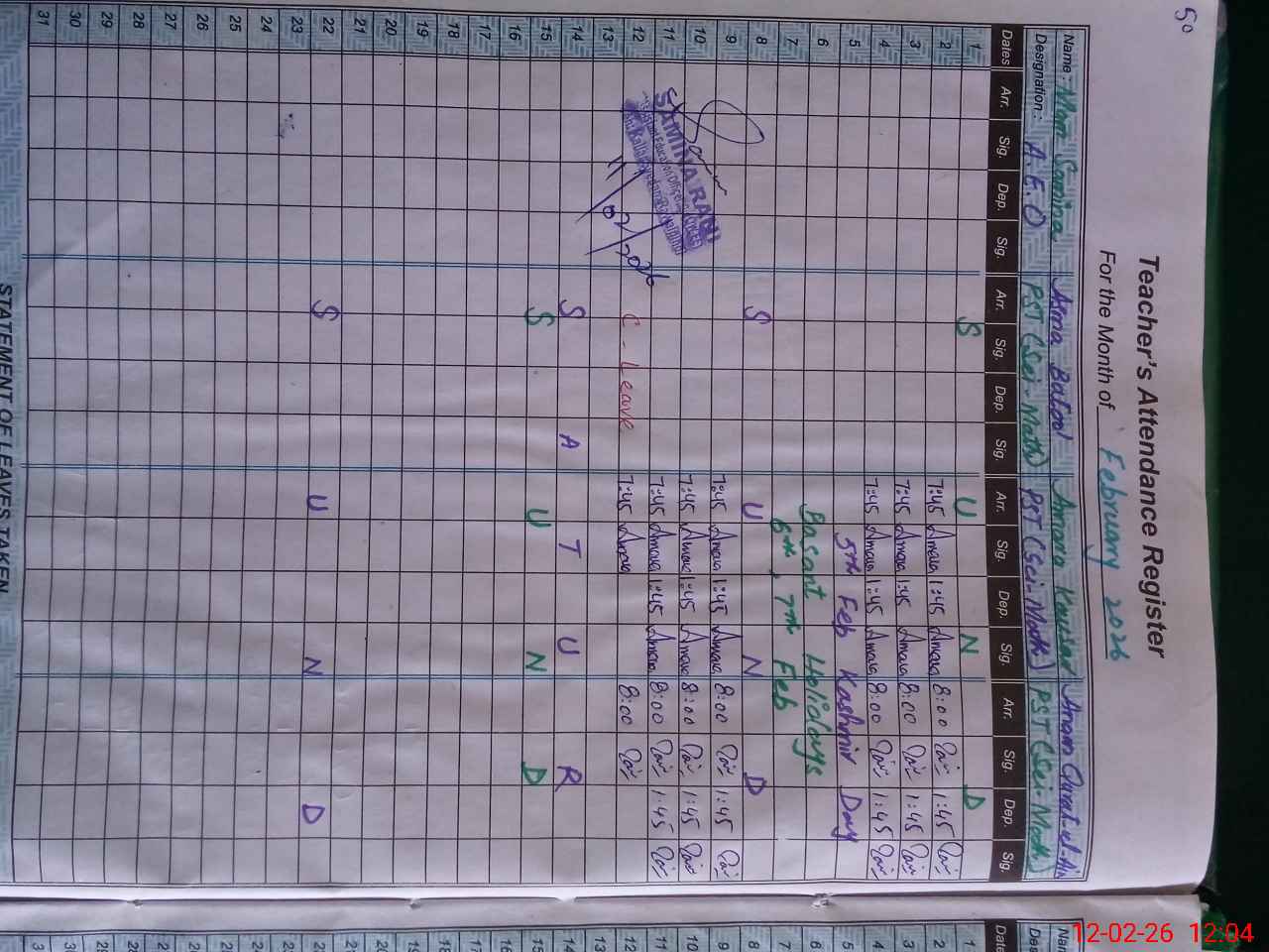 | 37**** | As**** Ba**** | PST Science/Maths | Regular | 0 | 0 | 0 | 0 | 0 | 0 | 0 | 0 | 0 | Casual |