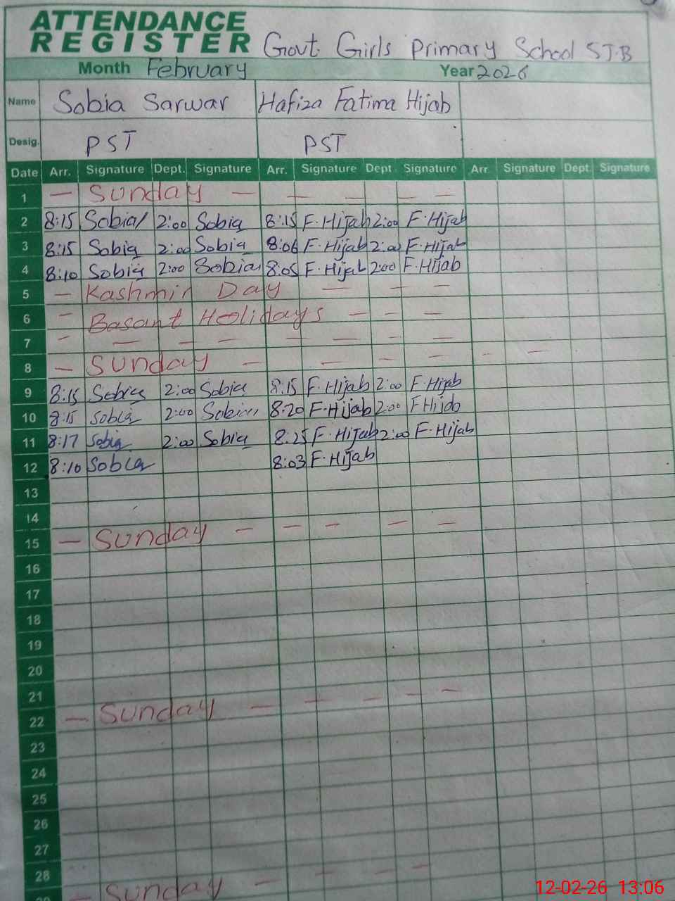 | Name: SA**** TA**** Designation: (School Headmaster's/Headmistress's) PST Phone/Cell Number: 03**** |