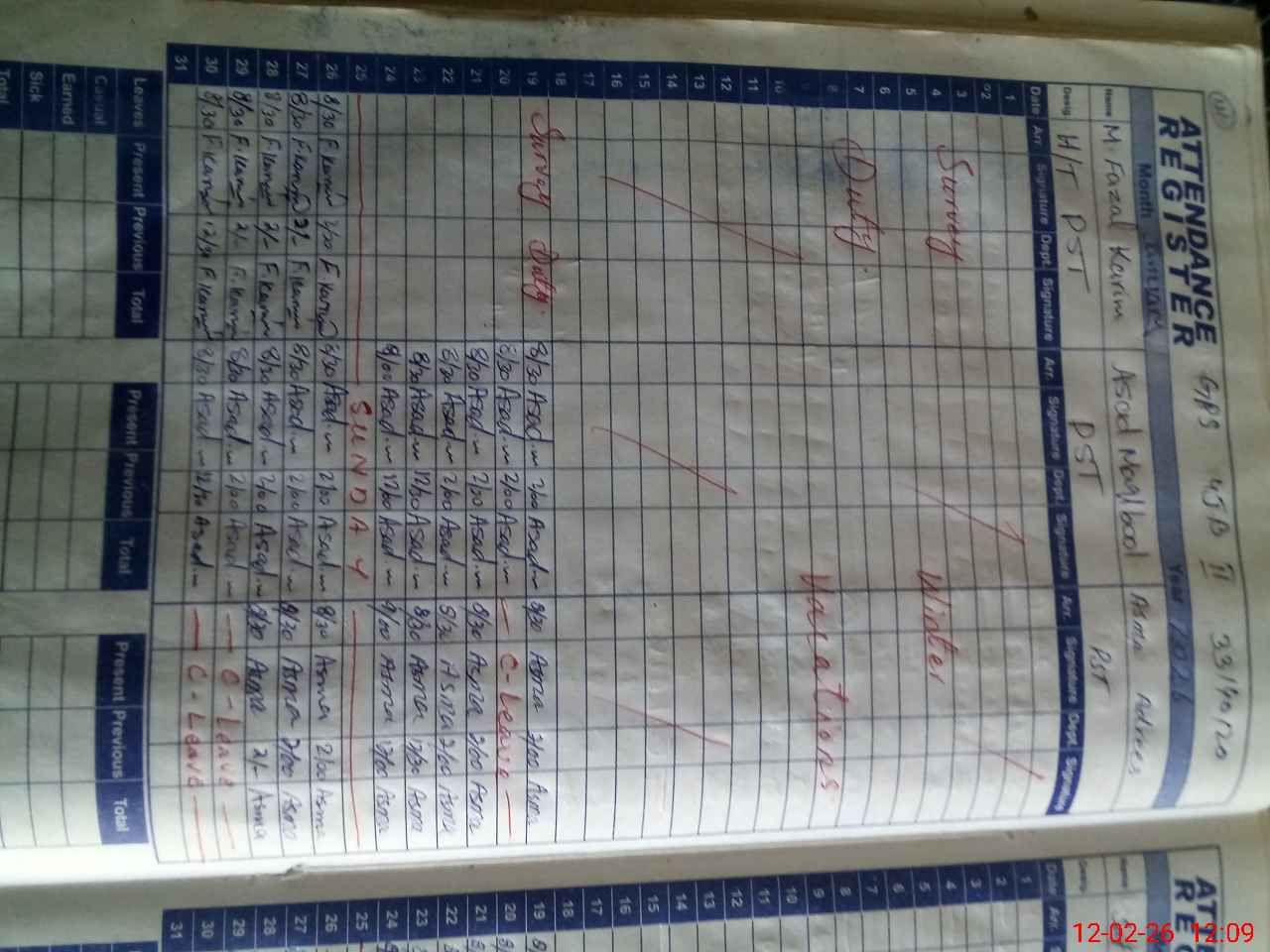 | CNIC | Full Name | Designation | R/C | Absence During Last Calender Month |