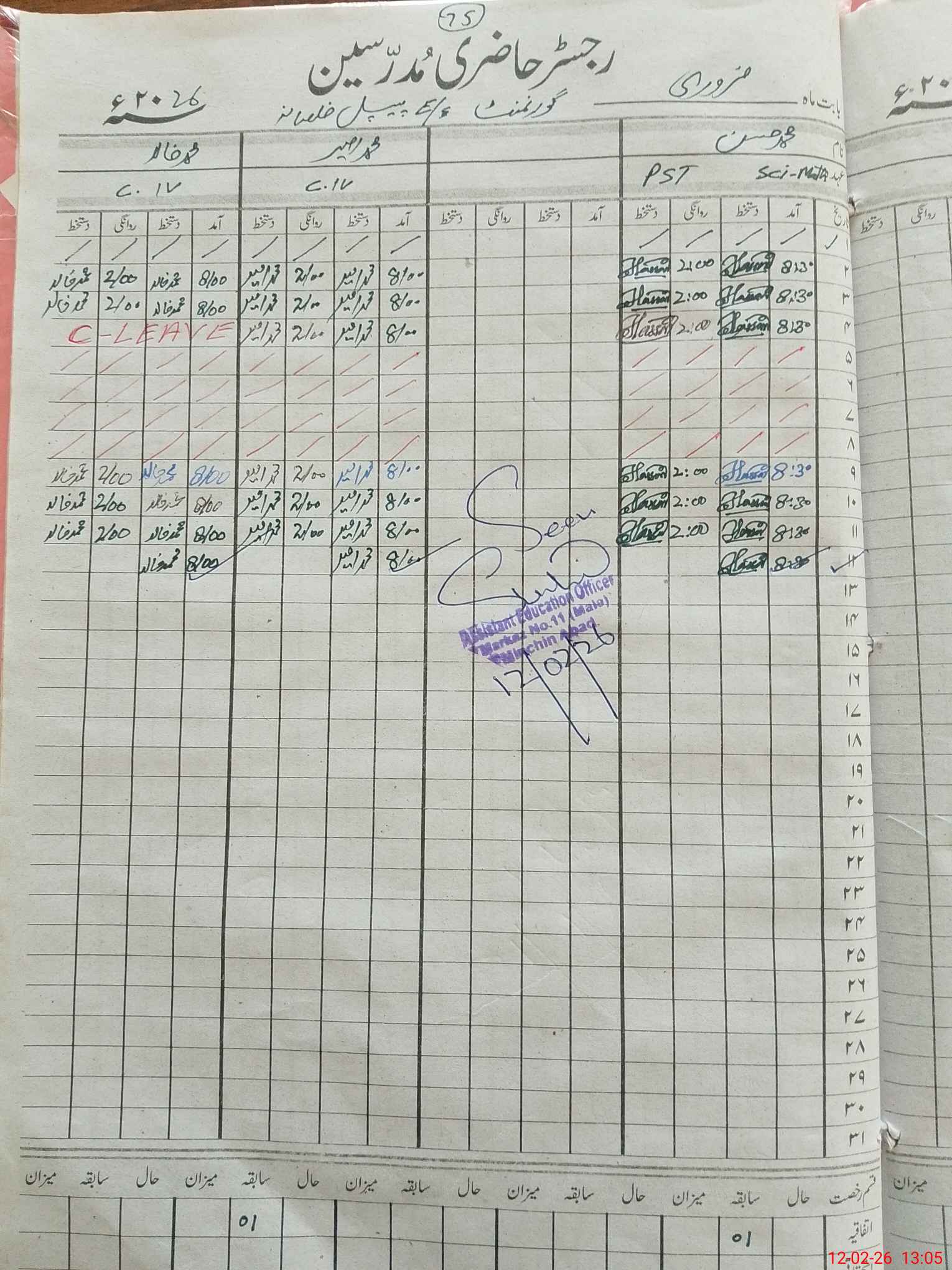 | CNIC | Full Name | Designation | R/C | Absence During Last Calender Month |