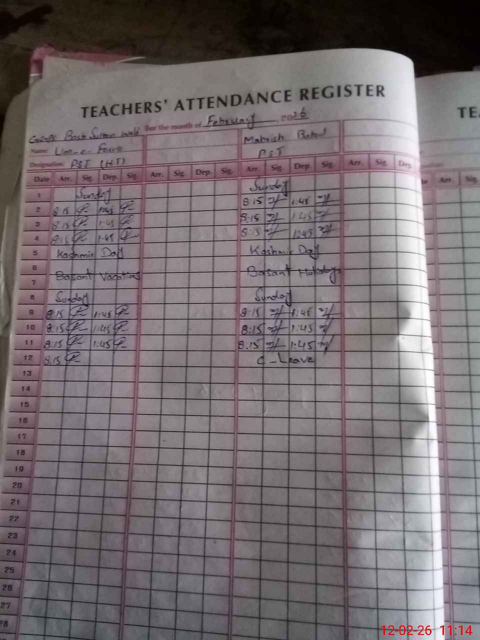 | Name: UM**** FA**** Designation: (School Headmaster's/Headmistress's) PST Phone/Cell Number: 03**** |