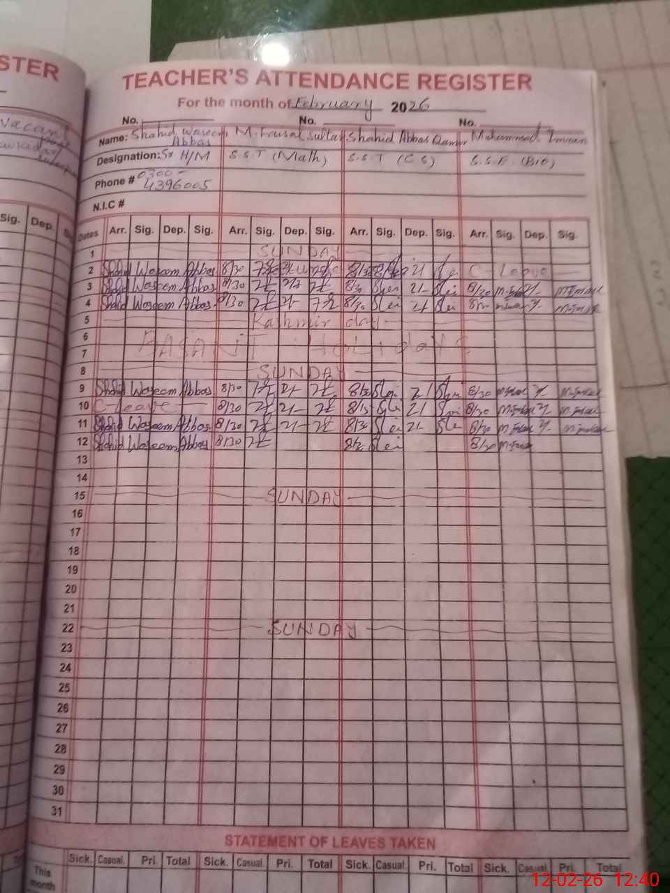 | Name: Sh**** Wa**** Ab**** Designation: (School Headmaster's/Headmistress's) Snr Head Master Phone/Cell Number: 03**** |