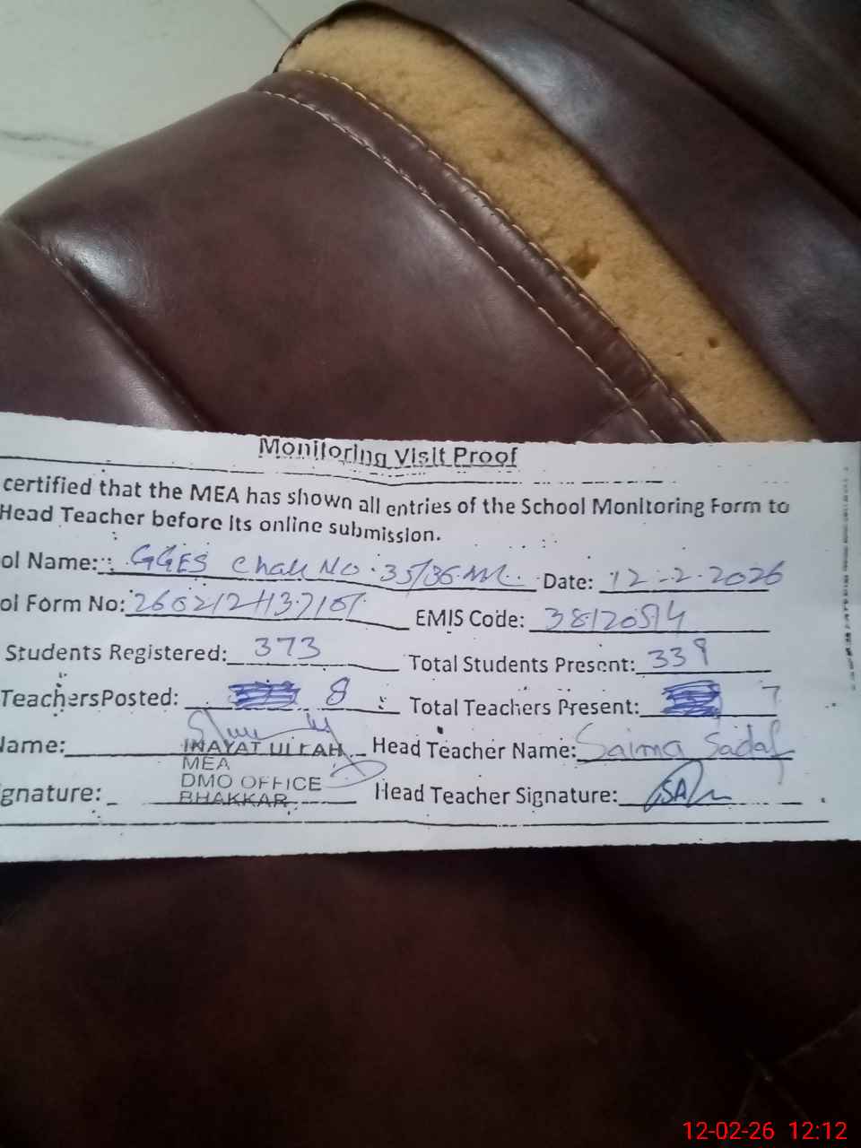 | Certified that this School was Inspected by the Undersigned MEA/DMO Today and the Information Stated Above is as Per Record. | |||||