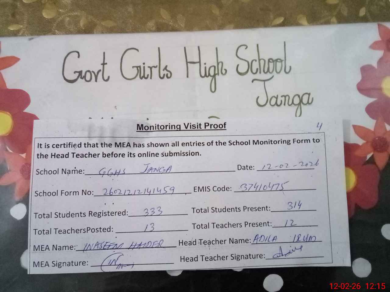 | EMIS Code: 37410475 | Name of School: GGHS JANGA | |||