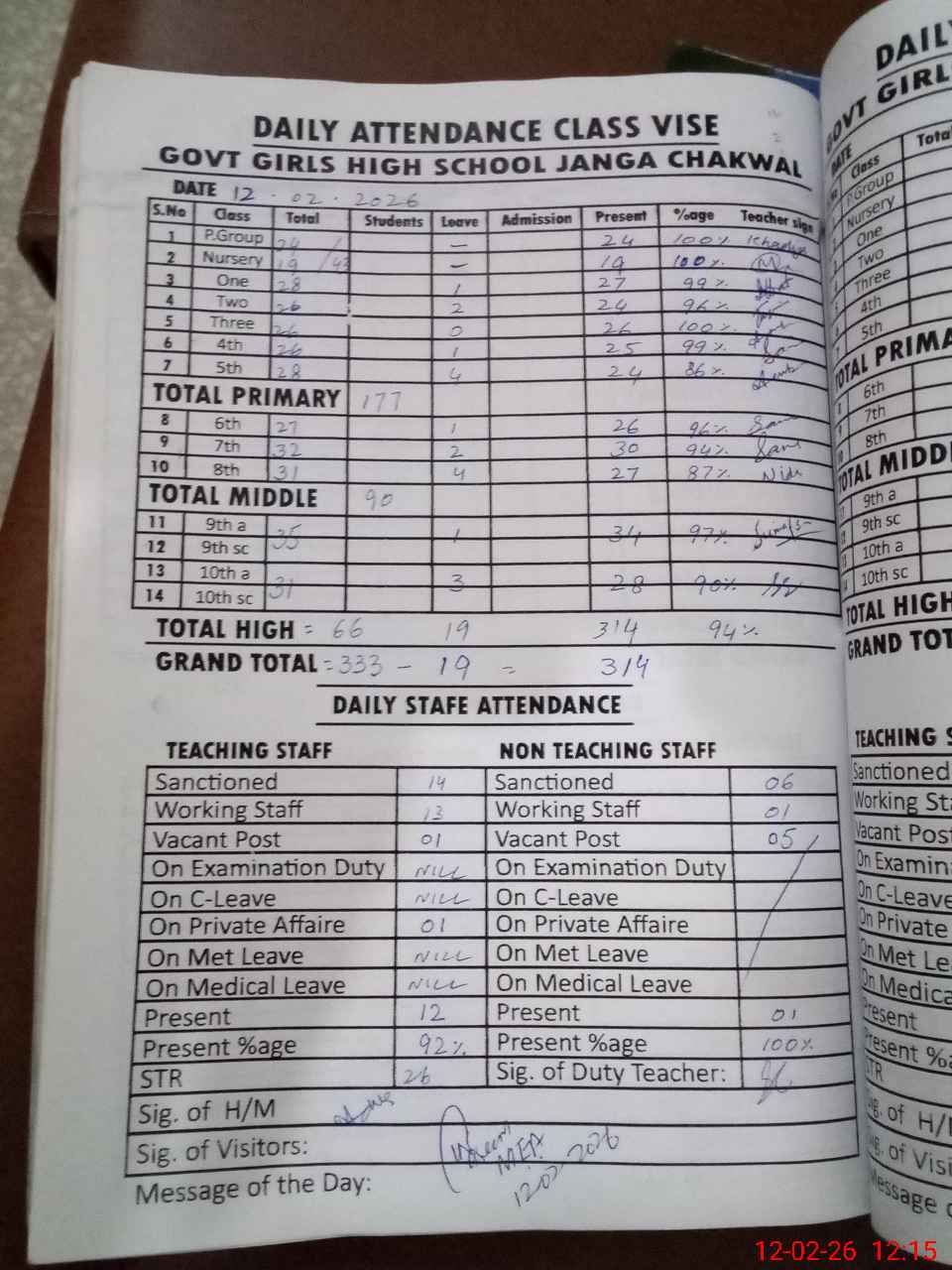 | District: CHAKWAL | Tehsil: CHAKWAL | Markaz: SECONDARY-WING | Level: High | |
