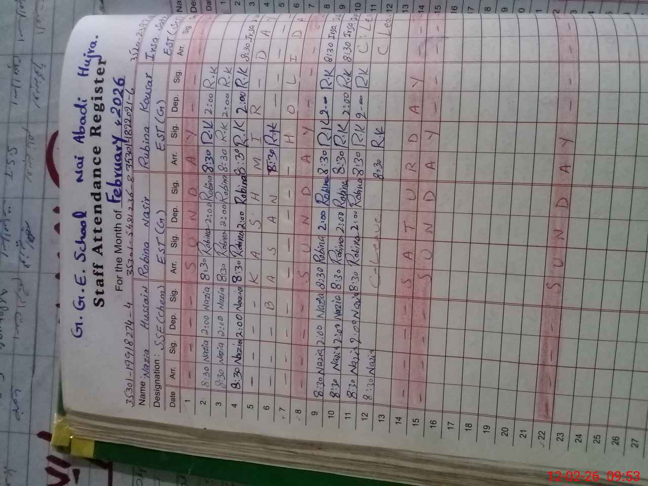 | CNIC | Full Name | Designation | R/C | Absence During Last Calender Month |