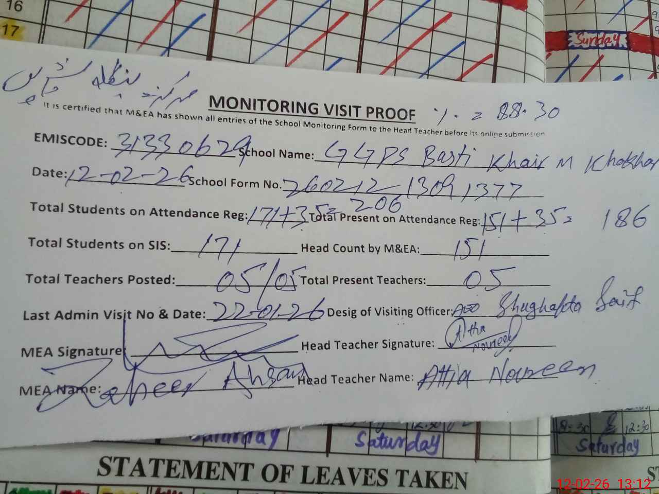 | EMIS Code: 31330629 | Name of School: GGPS BASTI KHAIR MUHAMMAD KHOKHAR | |||