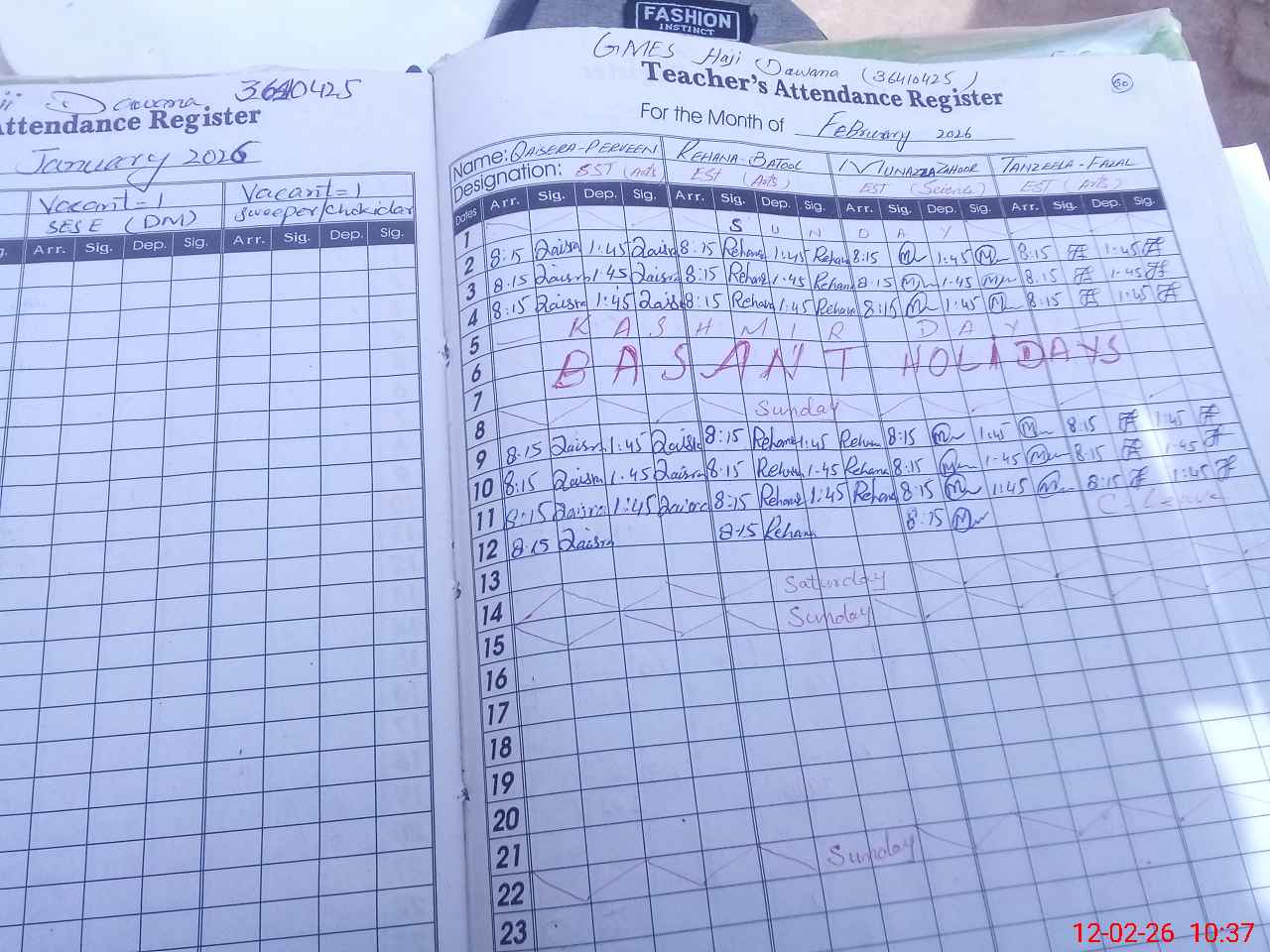| 36**** | Na**** Kh**** | PST Science/Maths | Regular | 0 | 0 | 0 | 0 | 0 | 0 | 0 | 0 | 0 | Maternity |