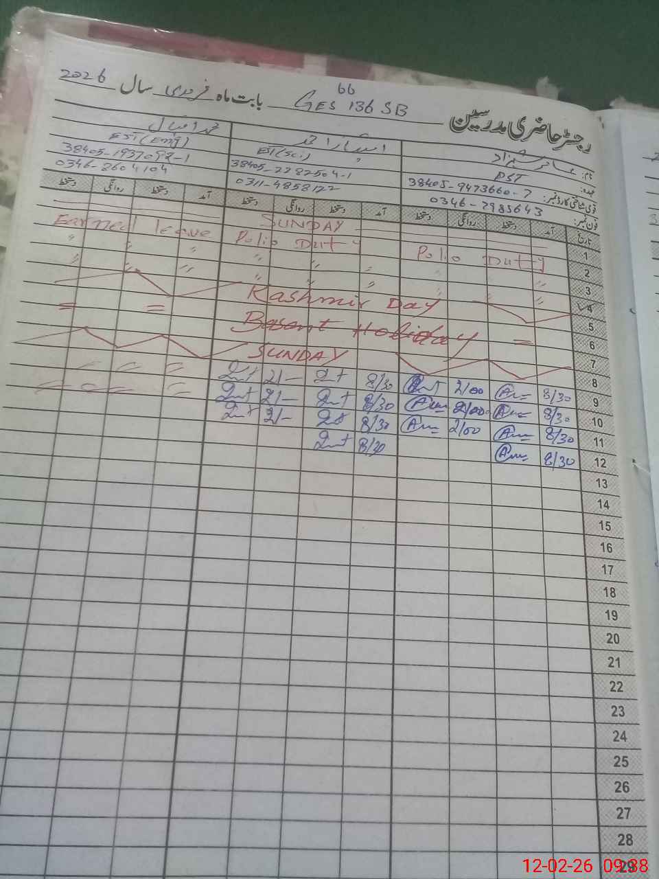 | CNIC | Full Name | Designation | R/C | Absence During Last Calender Month |