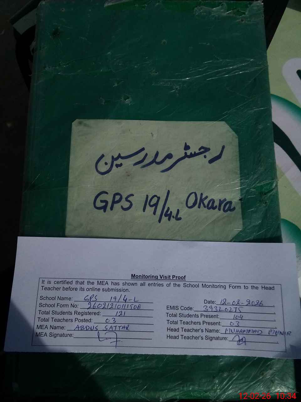 | EMIS Code: 39320275 | Name of School: GPS CHAK 19/4L | |||