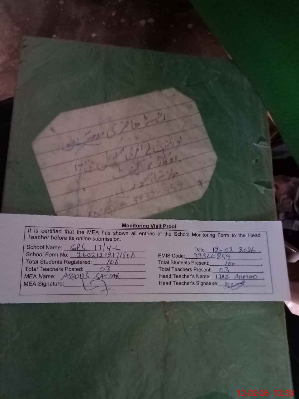 | EMIS Code: 39320859 | Name of School: GPS 17/4-L OKARA CANTT | |||