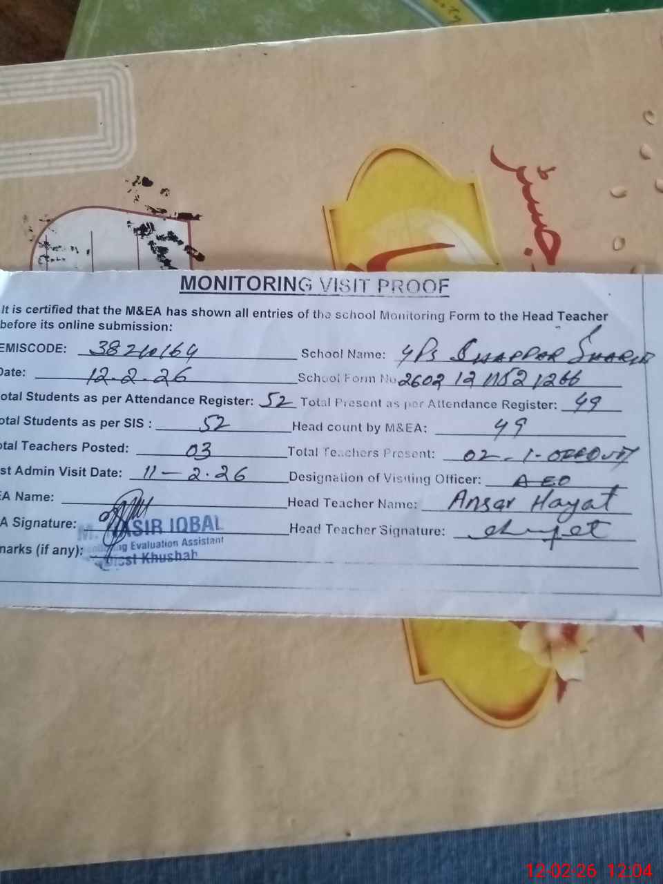 | EMIS Code: 38210164 | Name of School: GPS CHAPPAR SHARIF | |||