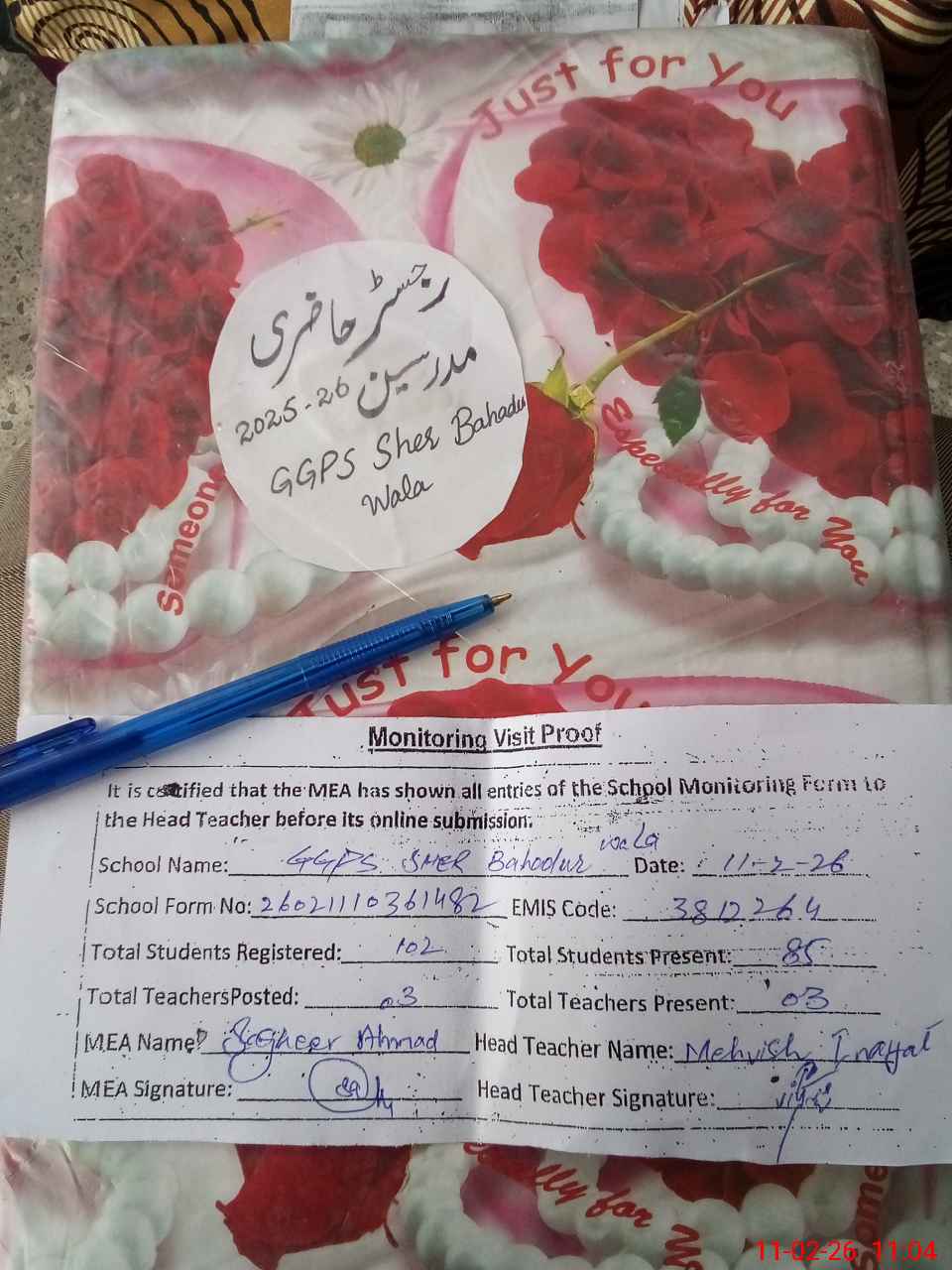 | Attendance Register | Head Teacher | MEA with School | Visit Proof |