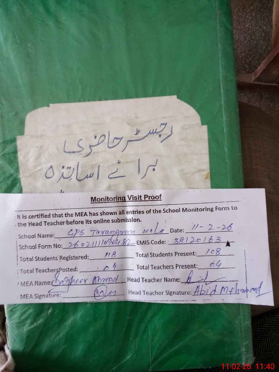 | EMIS Code: 38120163 | Name of School: GPS TARAGRAN WALA | |||