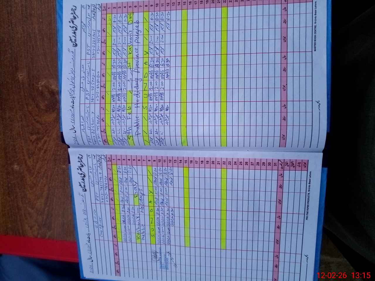 | CNIC | Full Name | Designation | R/C | Absence During Last Calender Month |