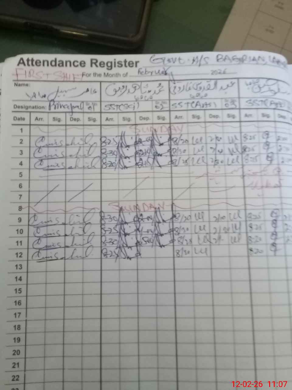 | CNIC | Full Name | Designation | R/C | Absence During Last Calender Month |