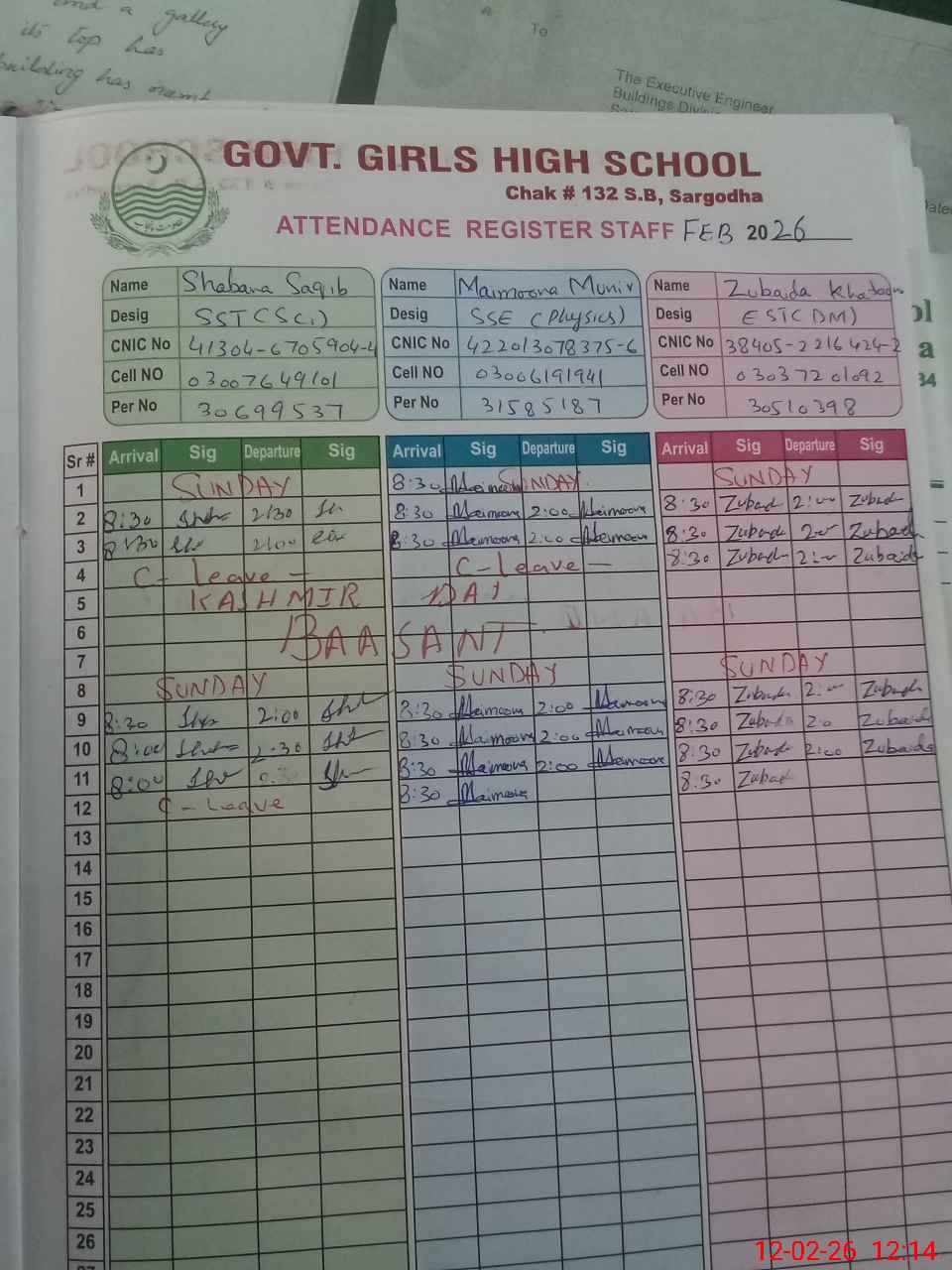 | 41**** | Sh**** Sa**** | SST Science | Regular | 0 | 0 | 0 | 0 | 0 | 0 | 0 | 0 | 0 | Casual |