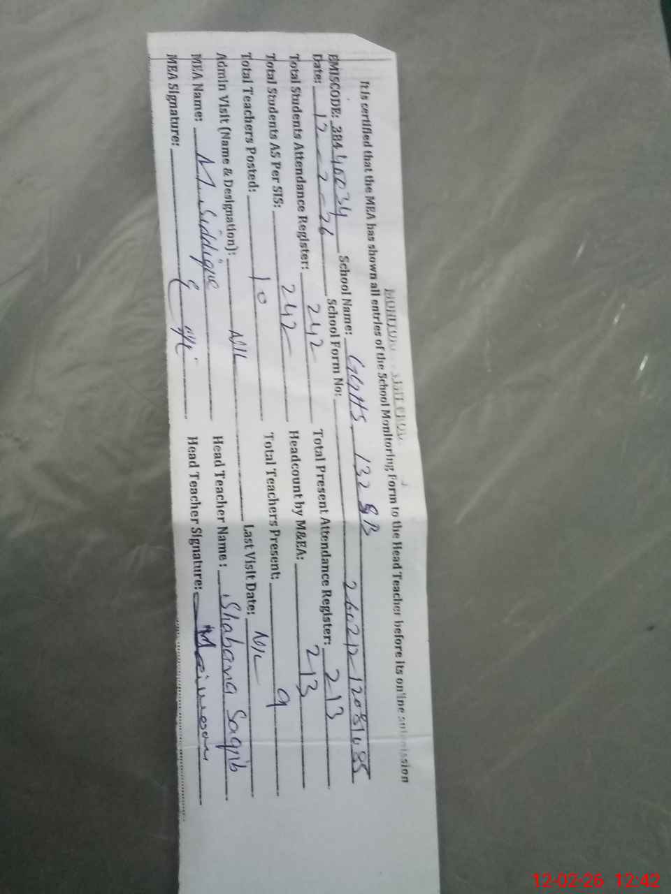 | EMIS Code: 38440034 | Name of School: GGHS CHAK NO.132 SB | |||