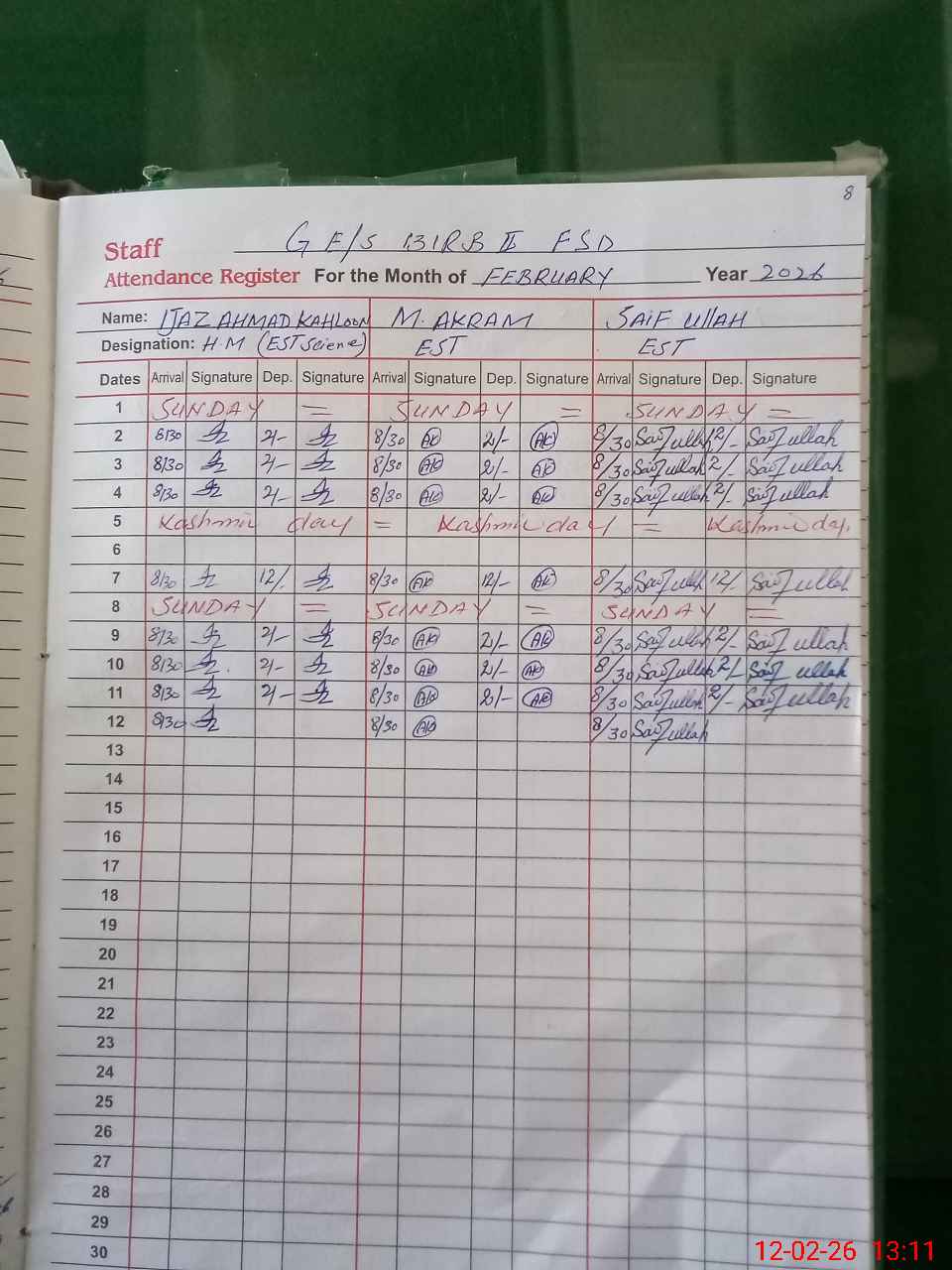 | CNIC | Full Name | Designation | R/C | Absence During Last Calender Month |