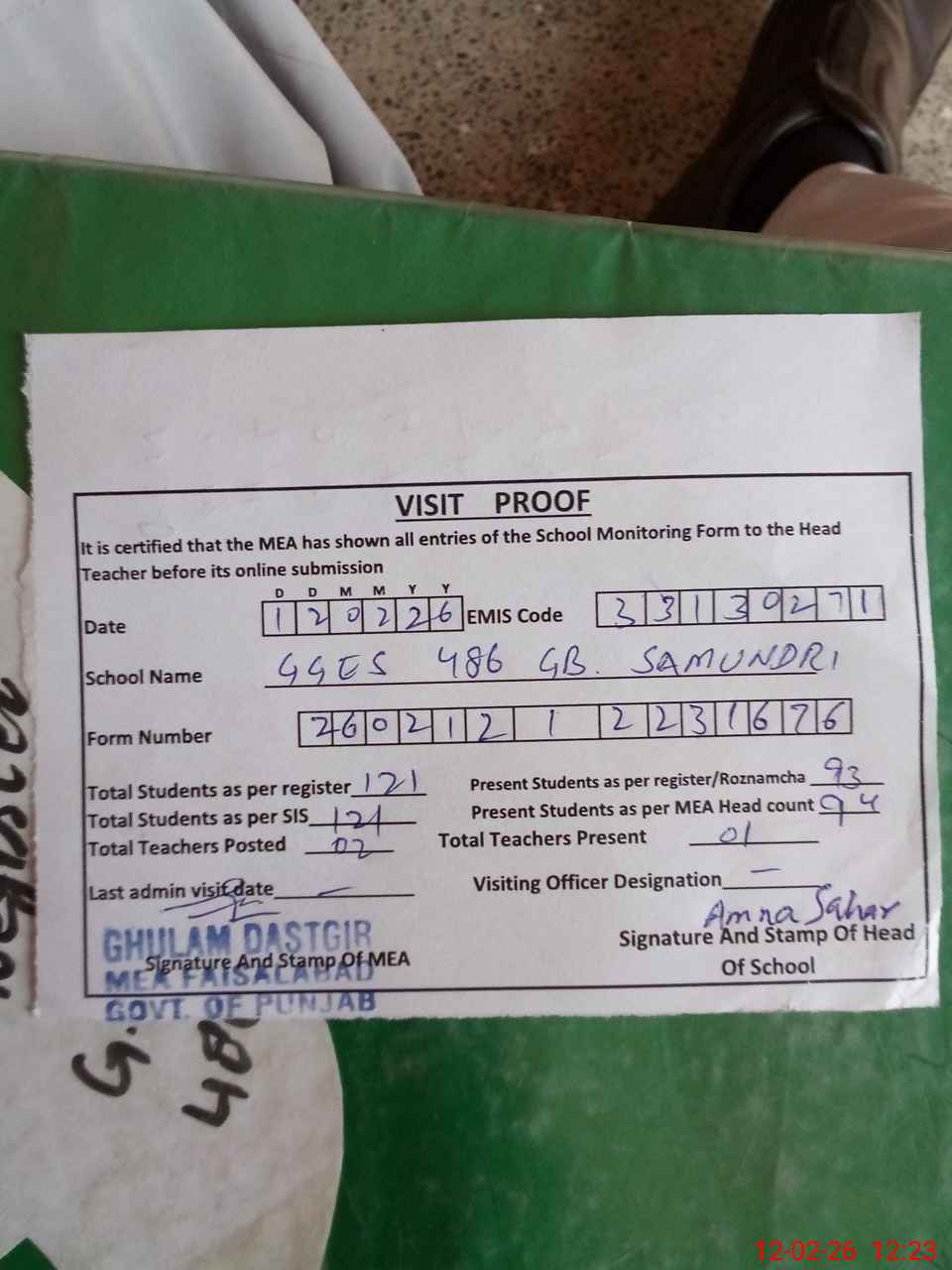 | EMIS Code: 33130271 | Name of School: GGES CHAK 486 GB MAMUNKAJAN | |||