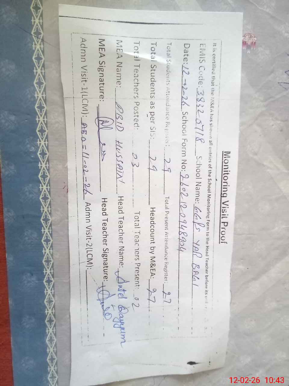 | EMIS Code: 38320718 | Name of School: GGPS YAR BAGI | |||