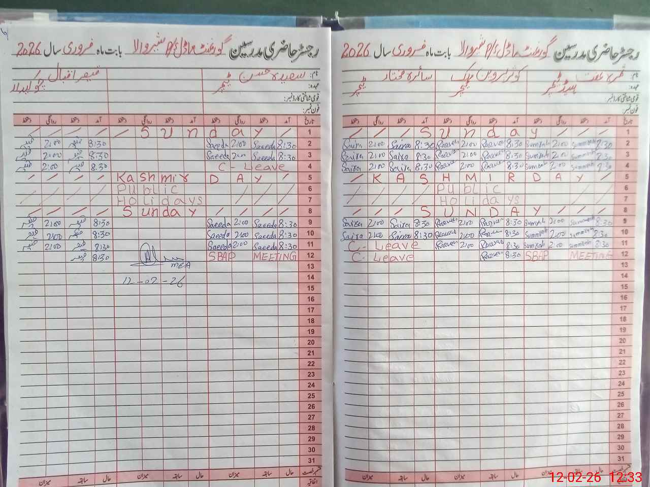 | CNIC | Full Name | Designation | R/C | Absence During Last Calender Month |