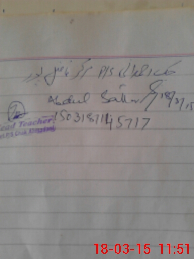 | Name: Zu**** Al**** Designation: (School Headmaster's/Headmistress's) Headmaster Phone/Cell Number: 03**** |
