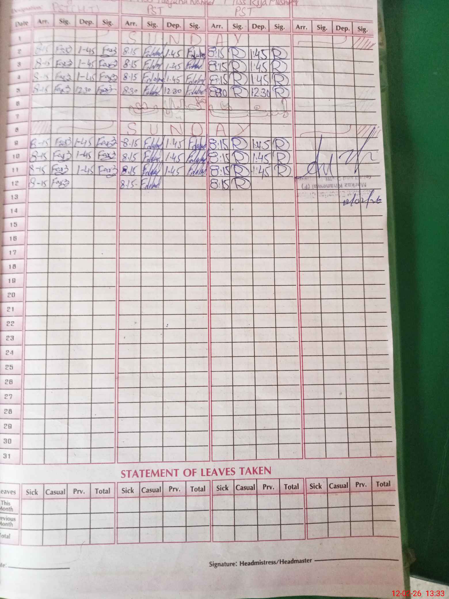 | Name: Fa**** Ta**** Designation: (School Headmaster's/Headmistress's) PST Phone/Cell Number: 03**** |