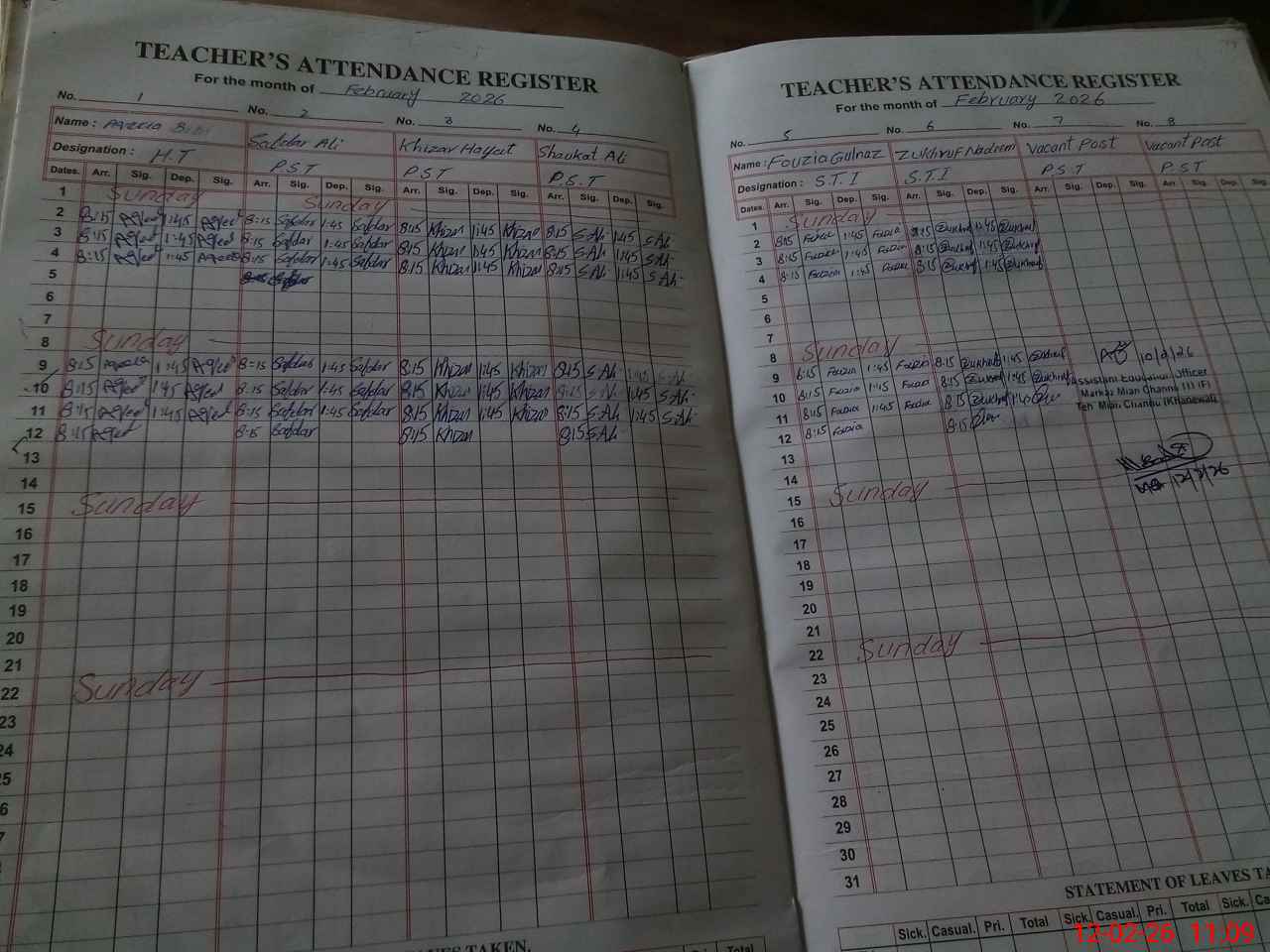 | Name: Aq**** Bi**** Designation: (School Headmaster's/Headmistress's) PST Phone/Cell Number: 03**** |