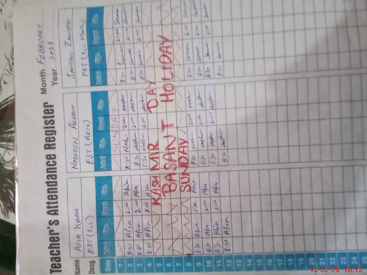 | CNIC | Full Name | Designation | R/C | Absence During Last Calender Month |