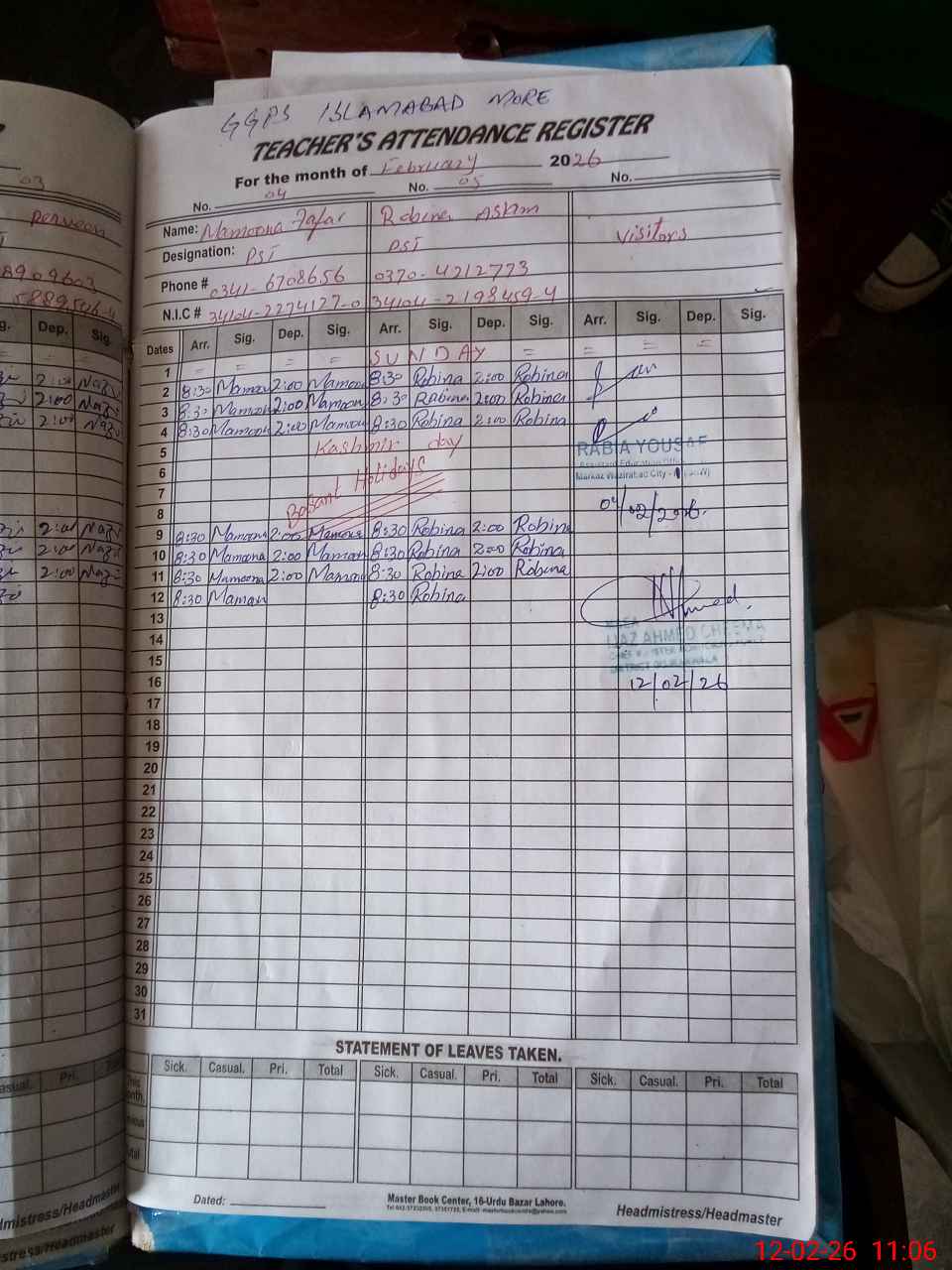| Name: Ha**** Bi**** Designation: (School Headmaster's/Headmistress's) PST Phone/Cell Number: 03**** |
