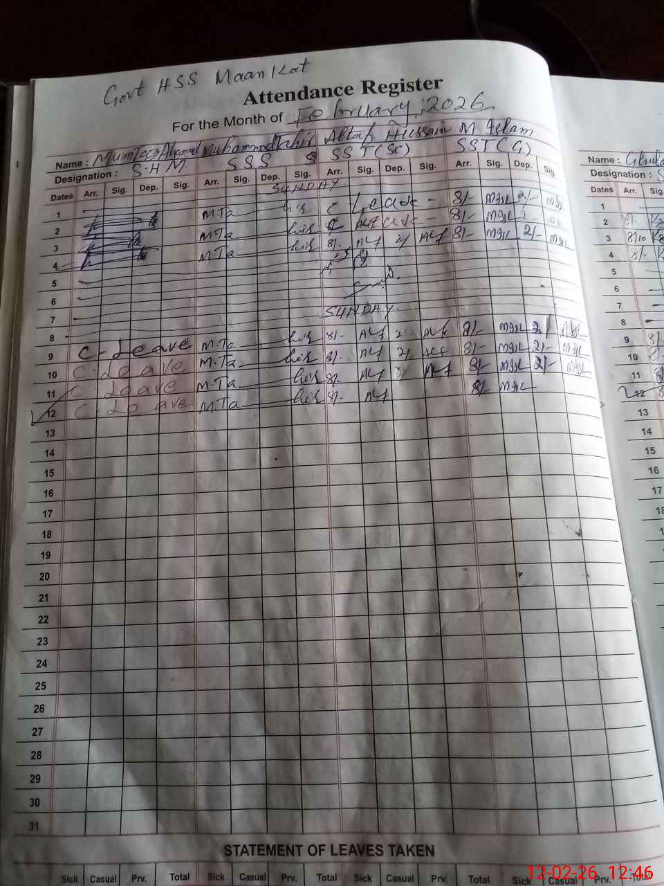 | Monitoring Date: 12-02-2026 | Start Time: 12-02-2026 12:45 PM | End Time: 12-02-2026 01:41 PM | Name of MEA: MU**** TA**** | |