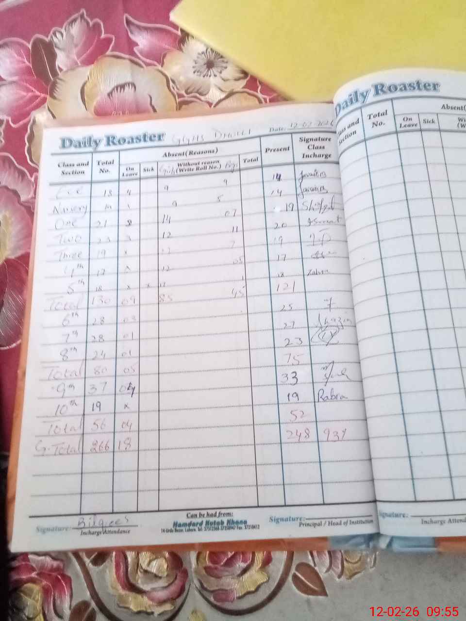 | CNIC | Full Name | Designation | R/C | Absence During Last Calender Month |