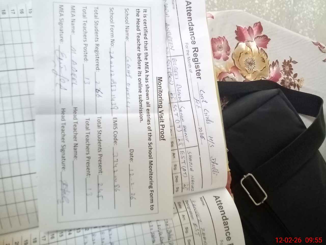| Attendance Register | Head Teacher | MEA with School | Visit Proof |