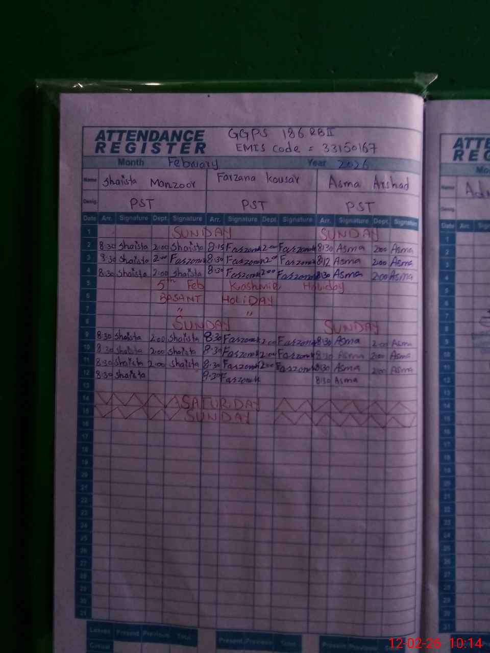 | Monitoring Date: 12-02-2026 | Start Time: 12-02-2026 09:32 AM | End Time: 12-02-2026 10:16 AM | Name of MEA: MU**** FA**** | |
