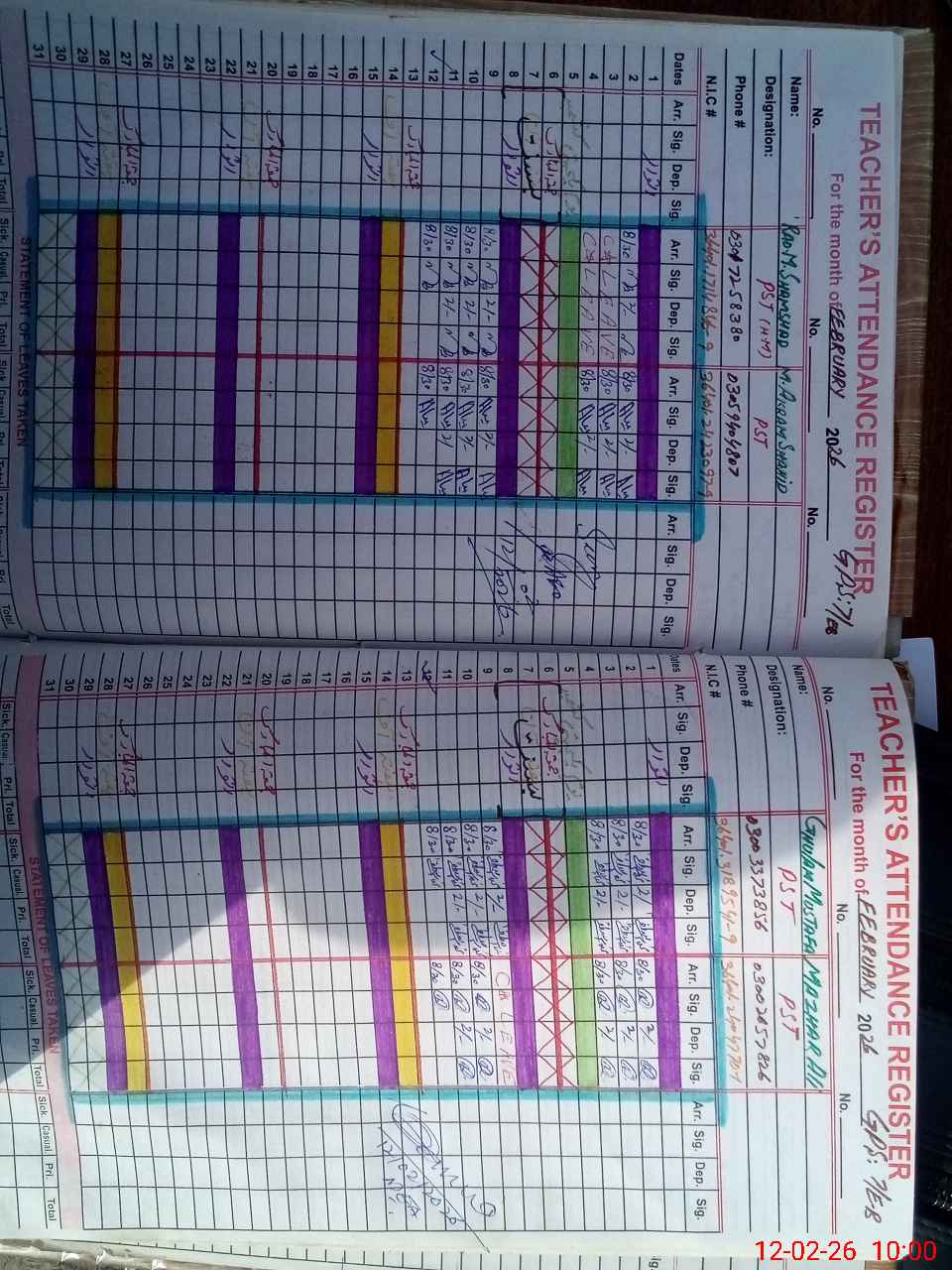 | Name: MU**** SH**** Designation: (School Headmaster's/Headmistress's) PST Phone/Cell Number: 03**** |