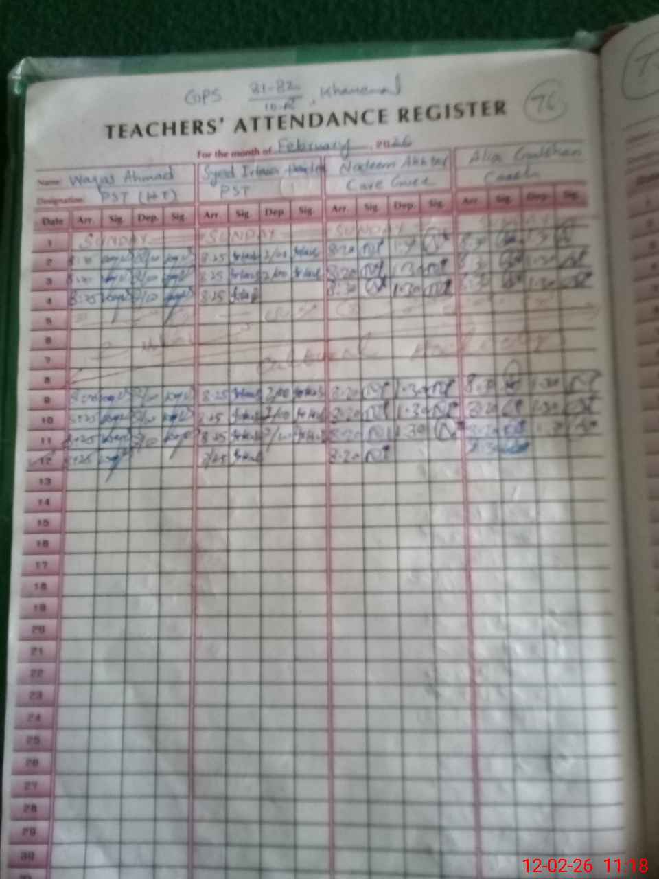 | Name: WA**** Designation: (School Headmaster's/Headmistress's) PST Phone/Cell Number: 03**** |