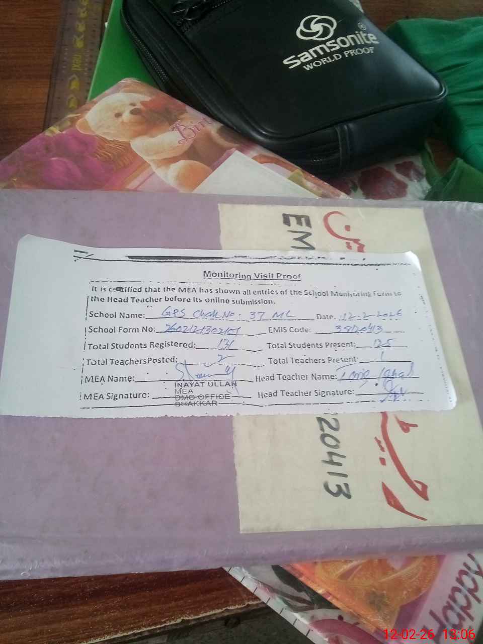 | EMIS Code: 38120413 | Name of School: GPS CHAK NO 37 ML | |||