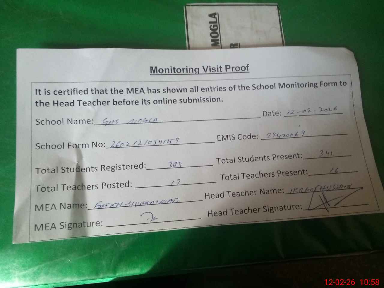 | EMIS Code: 37420069 | Name of School: GHS MOGLA | |||