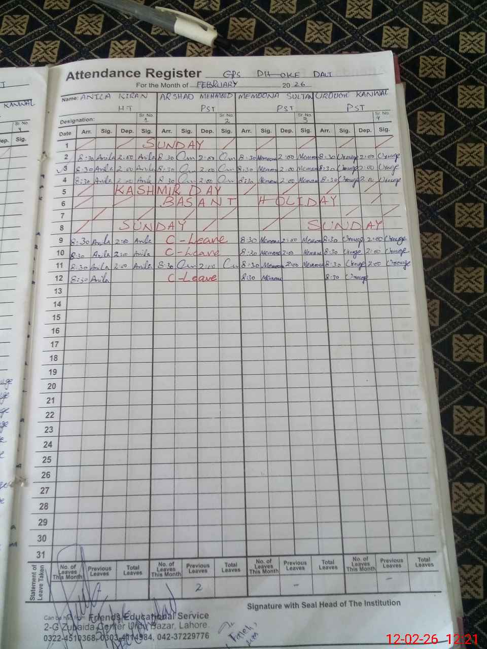 | Name: An**** Ki**** Designation: (School Headmaster's/Headmistress's) PST Phone/Cell Number: 03**** |