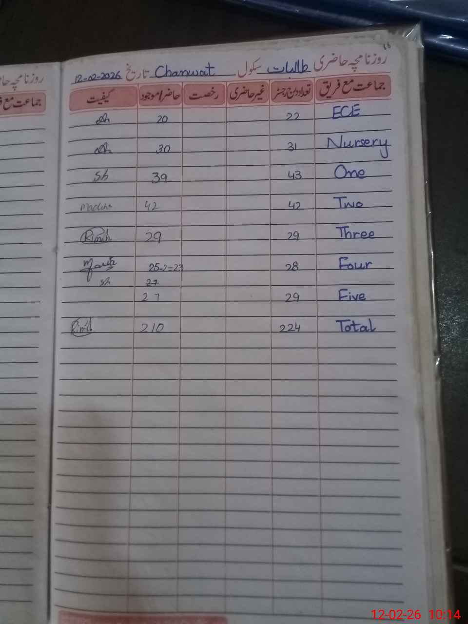 | No. of Students Present - Female | 0 | 20 | 37 | 42 | 29 | 23 | 27 | 208 | ||||||||