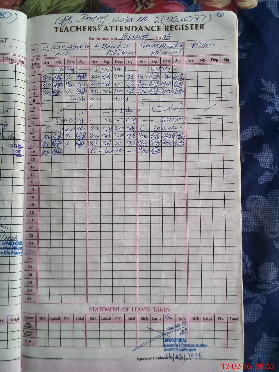 | EMIS Code: 32320787 | Name of School: GPS DADRAY WALA NO. 2 | |||