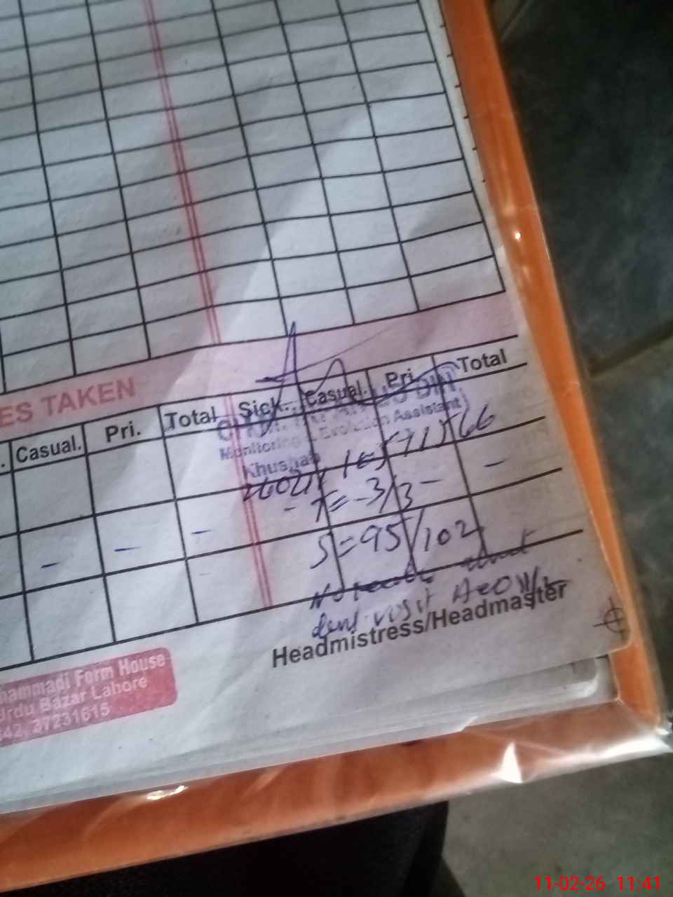 | Attendance Register | Head Teacher | MEA with School | Visit Proof |